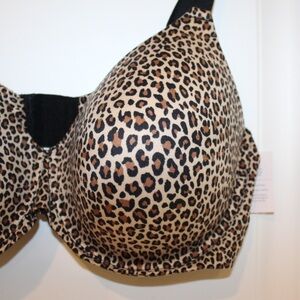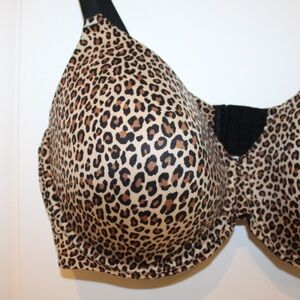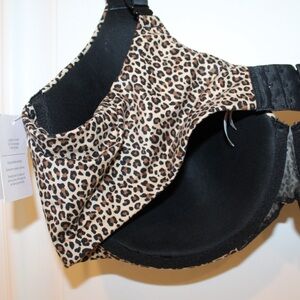 Auden lightly lined, full coverage, T-shirt bra, brown and black leopard print, adjustable straps, smooth under clothes, designed to reduce wire poke-through and enhance bra life, size 46DD, NWT (new with tags), never worn.