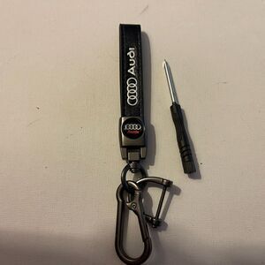 Audi Key Fob Keychain in Black Leather with Logo NWT