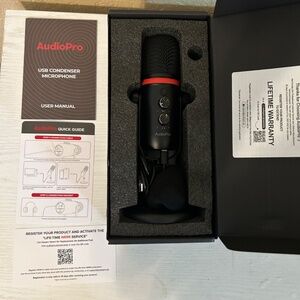 Audiopro USB Microphone, Cardioid Condenser Gaming Mic for PC/Laptop/Phone/PS4/5, Headphone Output, Volume Control, USB Type-C Plug and Play, LED Mute Button, for Streaming, Podcast. Unit comes in original box