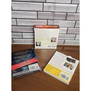 Set if 3 audio books features Taking the Titantic, Bones by Johnathan Kellerman, Struck by Lightning by Chris Colfer. All disc are present. Some disc may show a little wear but all are functional. Preview pictures for a visual description before purchasing.