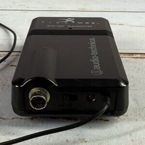 The Audio-Technica Wireless Transmitter is your go-to for seamless audio performance. Designed in sleek black, it pairs effortlessly with the ATW-T201 model, ensuring a perfect fit for your Audio-Technica setup. Its lightweight and portable design make it ideal for on-the-go use, while the sturdy belt clip keeps it secure during performances. Easy to use, this transmitter is perfect for both professionals and enthusiasts looking to elevate their sound experience. This pre-owned item is in excellent condition, ready to deliver outstanding audio quality.