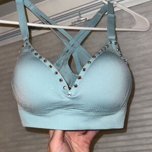 Pro/college dance/cheer NFL/NBA rhinestoned audition top! LOTS of padding adding for a push up fit! Adjustable straps. Clear Swarovski crystal rhinestones. One rhinestone missing in the back but it isn’t noticeable while wearing!