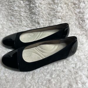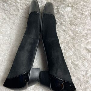 Auditions Black leather Suede and patent slip on shoes size 11 Pre owned in good used condition normal wear see all pictures any questions please message.