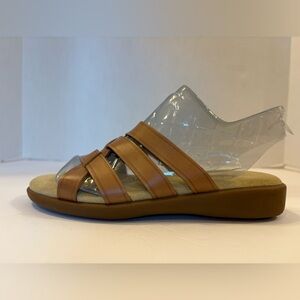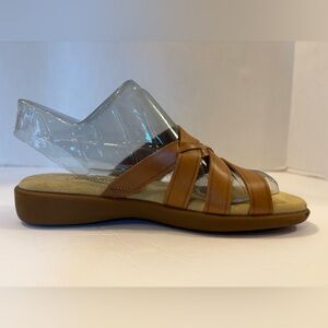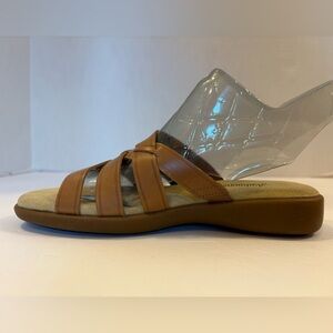 Auditions light brown tan leather weaved strappy flip flop sandals size 6 N