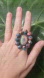 Vintage sterling silver GORGOUES spiny oyster turquoise & iridescent opal daisy statement ring, adjustable size 10. This is a STUNNING statement piece. Purchase for myself but its too big so I'm passing it on. Large flower ring. Stamped 925 sterling silver. The center is sparkling iridescent pastel blue and pink opal under multi-faceted lightweight glass cabochon. The center is surrounded by 11 pink and blue spiny oyster turquoise inlays. Adjustable open back.