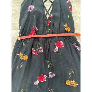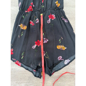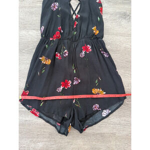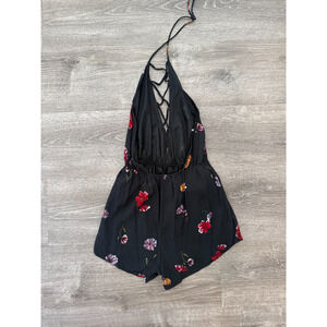 Audrey 3+1 Floral Black Halter V-Neck Romper with Elastic Waist Women's Medium