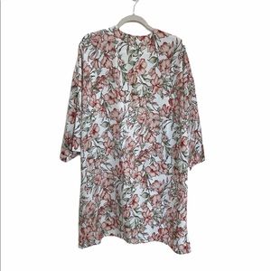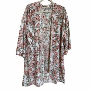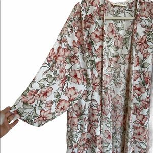 Open Front Rose Floral Print Oversized Kimono Cardigan