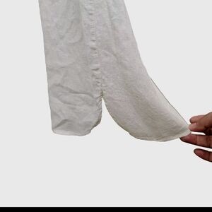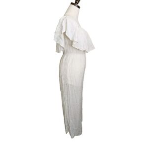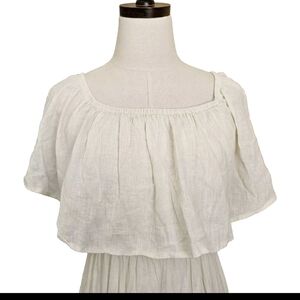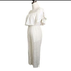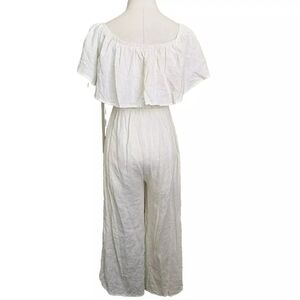 Audrey 3+1 Linen Blend Boho Wide Leg Off Shoulder Ruffle Ivory White Jumpsuit, S