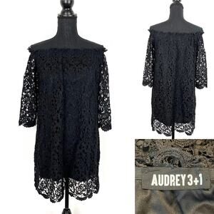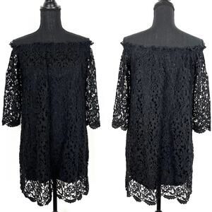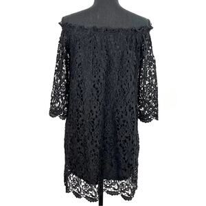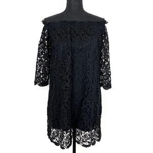 Audrey 3+1 Little Black Dress Crochet Off Shoulder Mini Small
