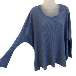 Style - dolman long sleeve tunic top - hi-lo hem with side slits - waffle textured material Boxy Oversized fit