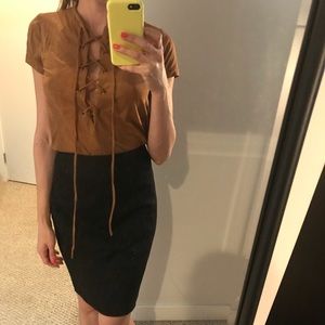 Audrey 3+1 tie front Dress. Camel colored mini bought from a boutique in San Francisco