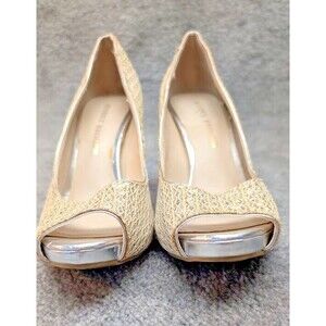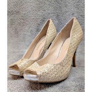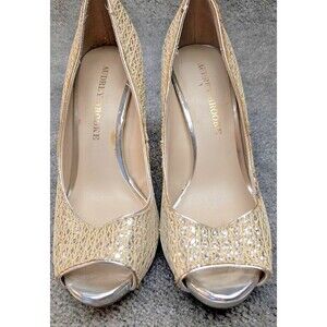 Audrey Brook Peep Toe Sandals Gold 3.5" Heel Sparkly Pumps Size 6 Slip On