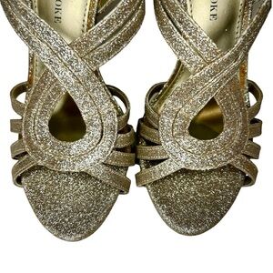 Audrey Brooke Gold Sparkly High Heels. Size 6.5