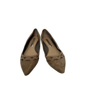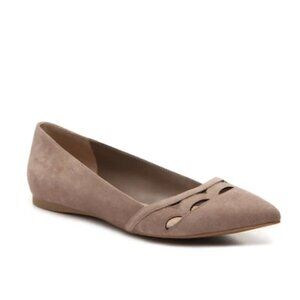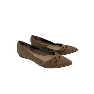 Audrey Brooke Marte Taupe Tan Leather Pointed Toe Flats With Cutout Detail
