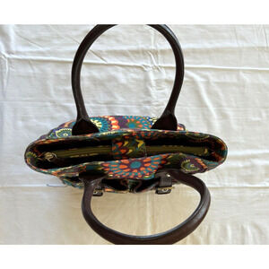 Audrey Brooke Satchel Purse Leather HandBag Colorful Floral Mandala Print