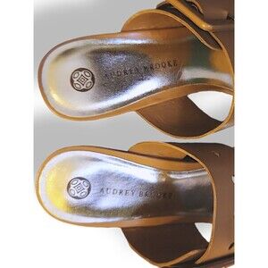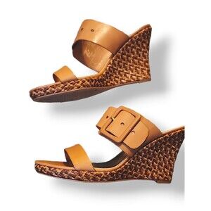 Audrey Brooke Size 9M Marta Beige Tan Wedge Slide Sandal Leather Buckle …