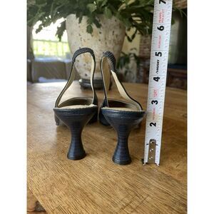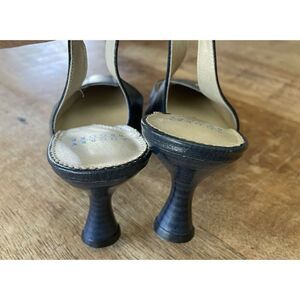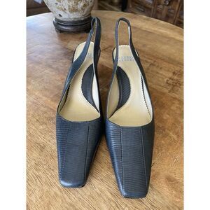 Audrey Brooke Textured Blue Leather Mauve Sling Back Strap Spool Heels Size 6B