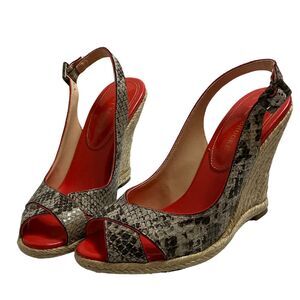 Audrey Brooke Wedge Heel Shoes Size 8M Peep Toe Snakeskin Adjustable Slingback