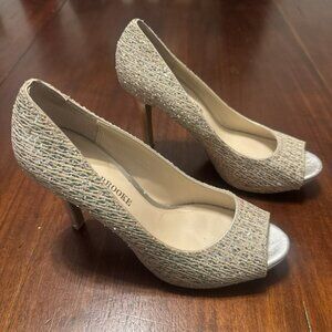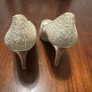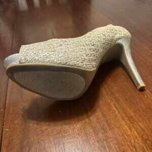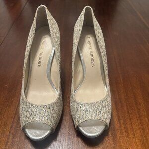 Audrey Brooke Women's Peep Toe Pumps Heels Glitter Metallic Silver Gold Size 7.5