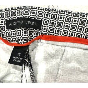 Audrey & Celine Womens Geometric Print Black & White Pants Size 14 Stretch Waist