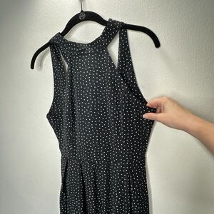 Audrey Halterneck Black White Polka Dot Open Tie Back Pleat Wide Leg Jumpsuit S