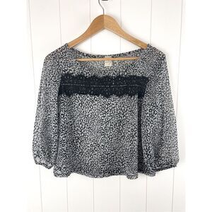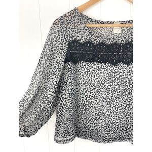 Audrey 3+1 Sheer Leopard Blouse with Eyelash Lace M
