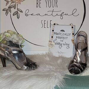 Audrey Brooke Metallic Look Heeled Shoes Size 6M