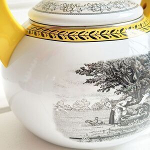 Audun Ferme By Villeroy & Boch Metal Enamel Tea Kettle 6 Cup Farm Design RARE