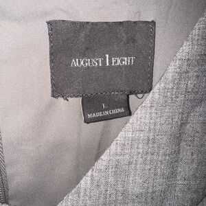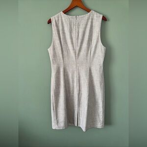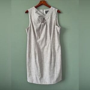 August 1 Eight Gray / Tan Sleeveless Lined Sheath Dress Twist at Neck Career L in good preowned condition