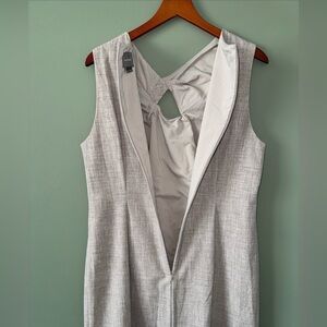 August 1 Eight Gray / Tan Sleeveless Lined Sheath Dress Twist at Neck Career L