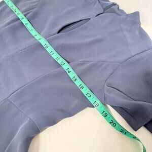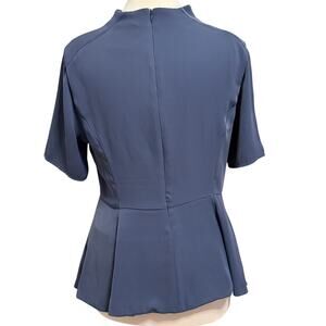 August 1 Eight Mandarin Collar Cutout Peplum Lined Blouse Sz M Blue Office Femme