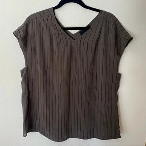 August 1 Eight Striped Cap Sleeve V Neck Blouse Gray Black Size XL