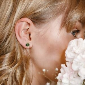 August 18k White Gold Peridot Birthstone Diamond Halo Stud Earrings S925 Gem