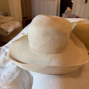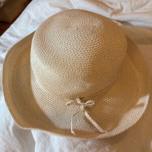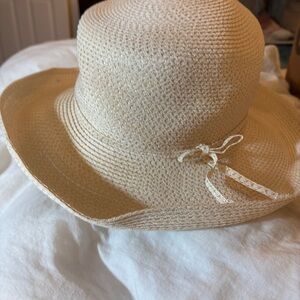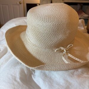 August Brand Straw Hat curled brim light color with pretty sheen. Paper & cotton