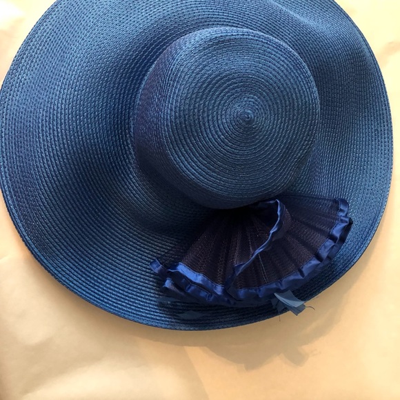 Beautiful Hibiscus Wide Brim Hat. Cobalt blue. Approximately 22” circumference. Adjustable inner string.