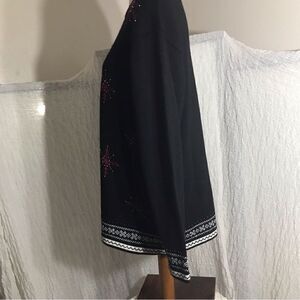 Black long sleeves kinit sweater top with Red embroidered design. Round neckline. Bottom white winter design print. Wool blend. Pre-owned in good condition. Please refer to pictures for best description and condition verification prior.