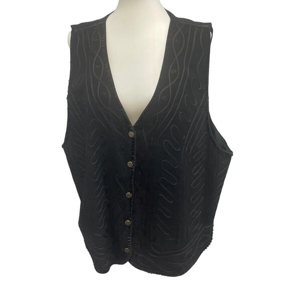 August Max Woman 2X Sleeveless Genuine Leather Lined Button Up Vest
