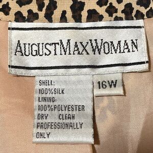 August Max Woman Zips up front. 100% Silk Animal Print Jacket. Beautifully done in blacks & browns soft silk. Chest zippered pockets