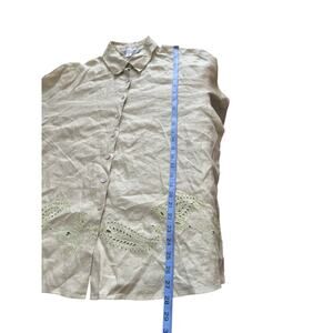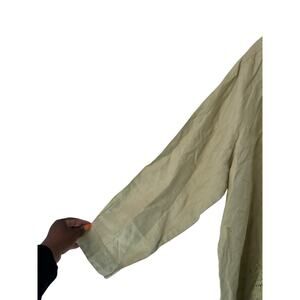 August Max Woman Green Relaxed Collared Lagenlook Long Sleeve Linen Blouse XL