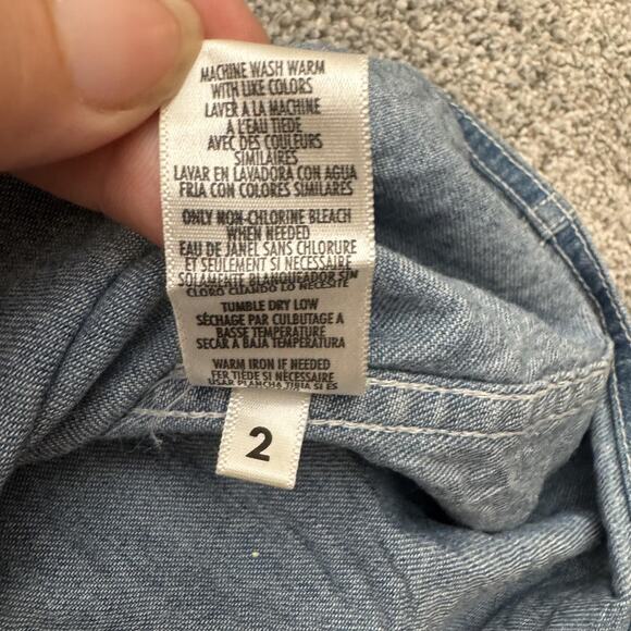 August Max Woman Shirt Womens 2XL Blue Denim Short Sleeve Button Up Pockets 90s