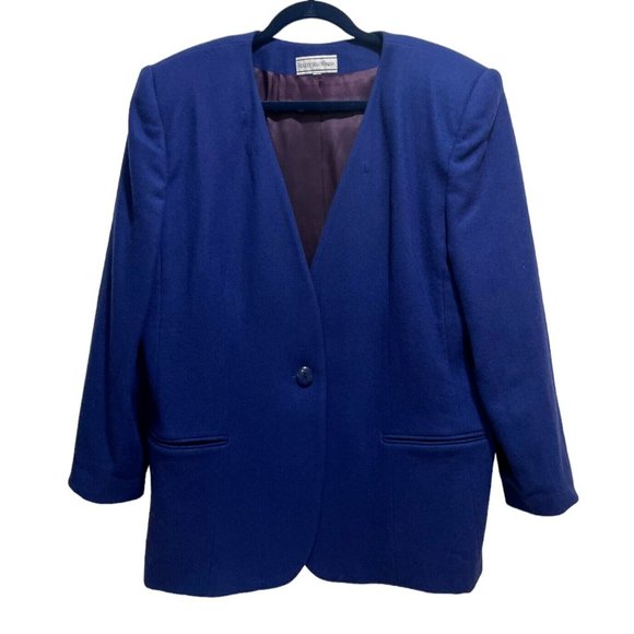 August Max Woman Vintage Purple Wool Button Front Blazer Size L/XL