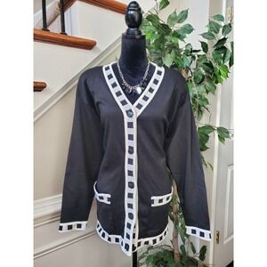 August Max Women Black Cotton Long Sleeve Buttons Front Cardigan Sweater Size 2X
