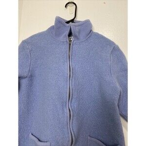 August Max Sweater Size S Blue Sky 100% Wool Women Full Zip Pocket Mock Neck long sleeves, size tag states X based on measuremenrst this fits size S, Sleeves are little shorts Please see pictures for more details and accurate measurements