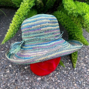 August Multi-Colored Wide Brim Packable Straw Sun Hat