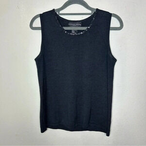 Gorgeous black sleeveless top. 100% silk. In excellent used condition. Neckline has beaded and sequin embellishments. Beautiful piece!
