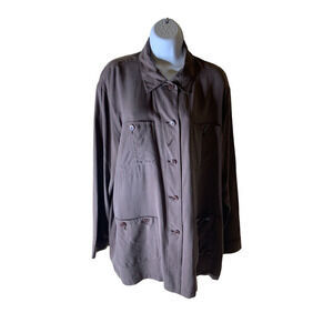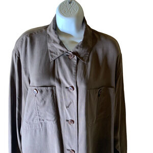 August Silk 100% Silk Blouse Womens Size Large Button Front Pockets Long Sleeves