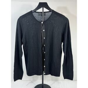 August Silk 100% Silk Knit Cardigan Sweater Black Sz M Button Front Crew Neck