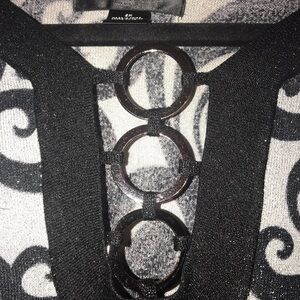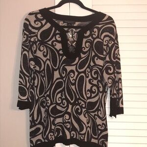 This August Silk top is gorgeous! Sparkle with 3/4 sleeves and a great three ring center focal.