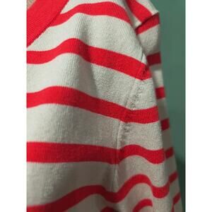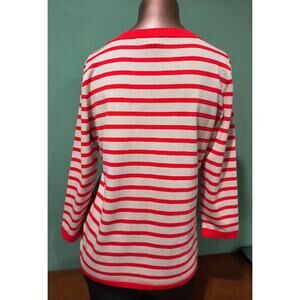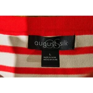 August Silk 3/4 Sleeve Striped Stretch Knit Top with Scoop Neck, Orng, Tan, Sz L