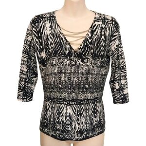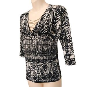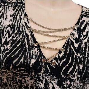 August Silk 3/4 Sleeve Top w Chain Detail Sz PS
